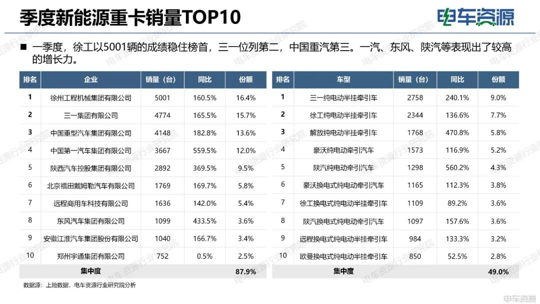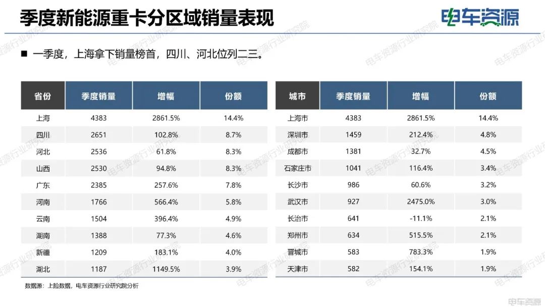 充电重卡与换电重卡:纯电充电和纯电换电在2025年一季度的销量远高于其他动力类型。纯电充电从2024年的6223辆增长到19683辆,同比增幅达216.3% ;纯电换电从4448增长到9783,同比增幅119.9%。说明纯电驱动(充电和换电)是新能源重卡的主流补能方式,且市场增长显著。