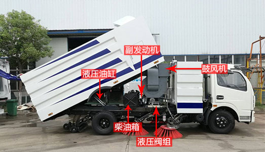 道路清扫车是集路面清扫、垃圾回收和运输为一体的新型高效清扫设备。简单的说就是在专用汽车底盘上改装道路清扫功能的扫地车型,车辆除底盘发动机外,另外加装一个副发动机,四把扫刷由液压马达带动工作,带风机、垃圾箱、水箱等多种配套设备。这种全新的车型可一次完成地面清扫、马路道牙边清扫、马路道牙清洗及清扫后对地面的洒水等工作,适用于各种气候和不同干燥路面的清扫作业。