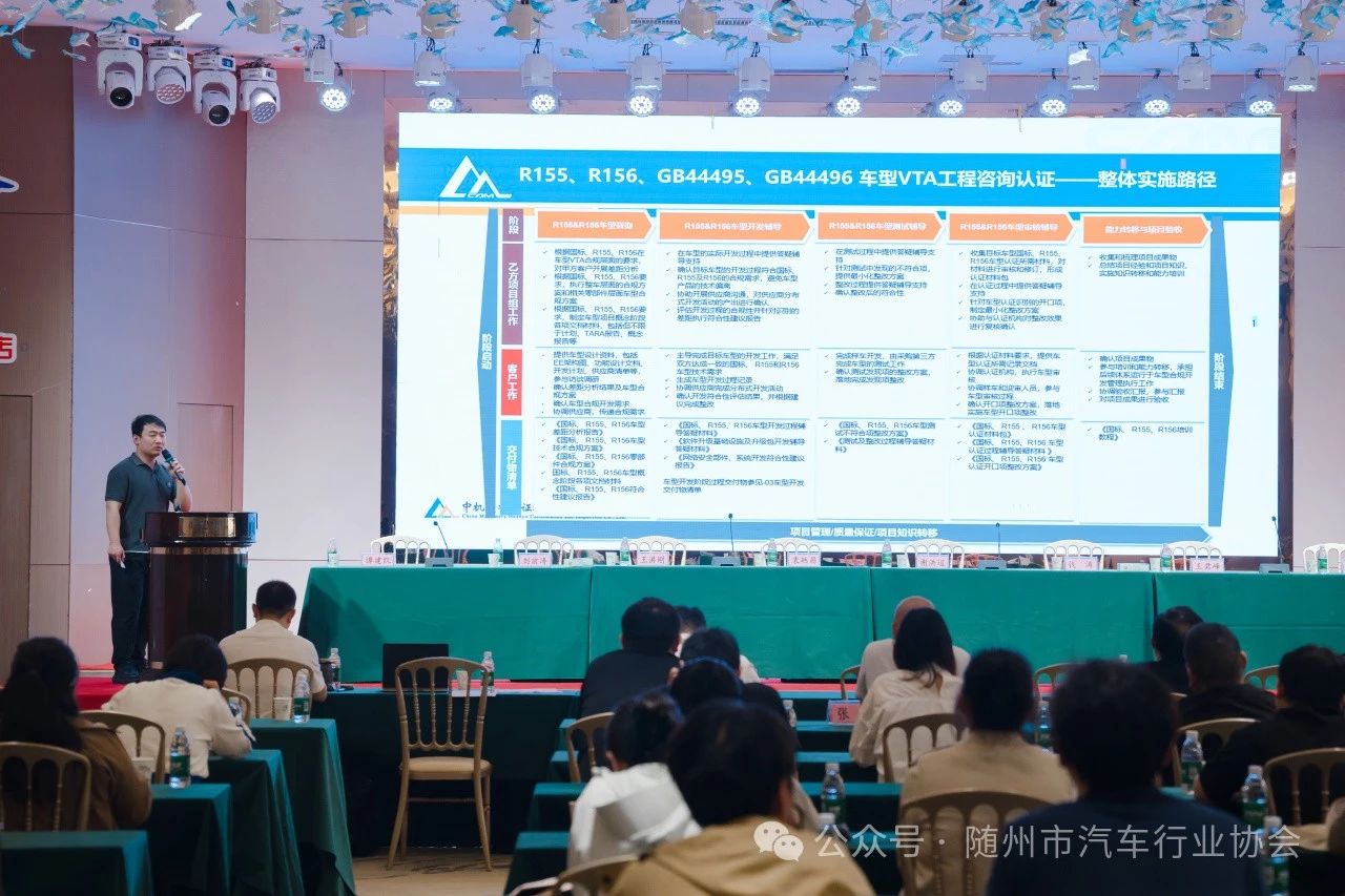 本次培训会在随州市工商联、随州市经济和信息化局、随州市商务局、随州市市场监督管理局的指导下,由随州市汽车行业协会主办,中汽认证中心有限公司、中机博也(宁波)汽车技术有限公司联合承办。会议由中汽认证总经理助理谭建凯主持。