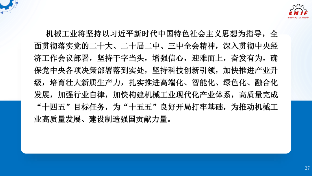 2025年2月14日,中国机械工业联合会2024年全年机械工业经济运行形势信息发布会在京召开。中国机械工业联合会执行副会长罗俊杰发布2024年全年机械工业经济运行情况,现将信息发布稿ppt分享如下,供大家学习参考。