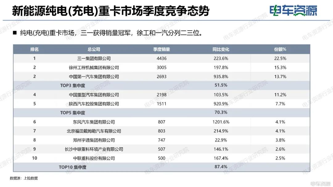 充电重卡与换电重卡:纯电充电和纯电换电在2025年一季度的销量远高于其他动力类型。纯电充电从2024年的6223辆增长到19683辆,同比增幅达216.3% ;纯电换电从4448增长到9783,同比增幅119.9%。说明纯电驱动(充电和换电)是新能源重卡的主流补能方式,且市场增长显著。