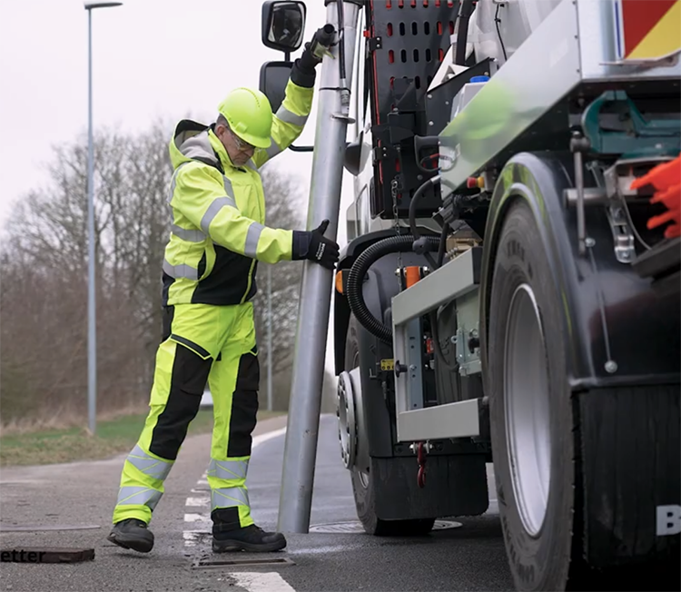 这款环卫车采用了模块化设计,可快速切换清扫、冲洗、积雪清理等功能模块,夏天可以清扫清洗路面,冬天则可以完成扫雪的作业。通过快拆接口可在20分钟内切换清扫/冲洗/除雪模块。这款车满足欧洲EN 15429-1标准对多季节作业的要求。