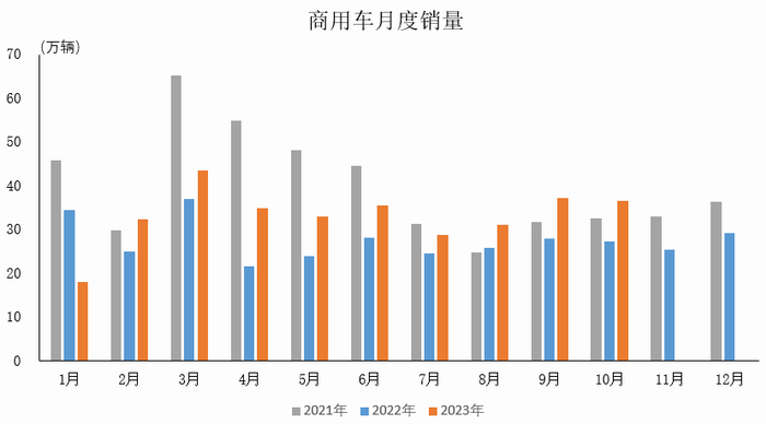 2023年1-10月,商用车产销分别完成328.6万辆和330.3万辆,同比分别增长22.1%和19.8%。