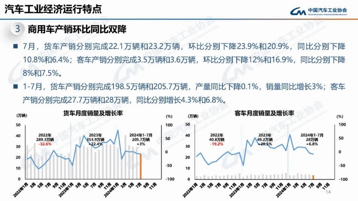 据中国汽车工业协会分析,7月,车市进入传统淡季,部分厂家迎来高温休假,产销节奏有所放缓,整体市场表现相对平淡,环比同比均呈现下降。其中,乘用车和商用车产销环比同比双降,新能源汽车和汽车出口同比继续保持较快增长。