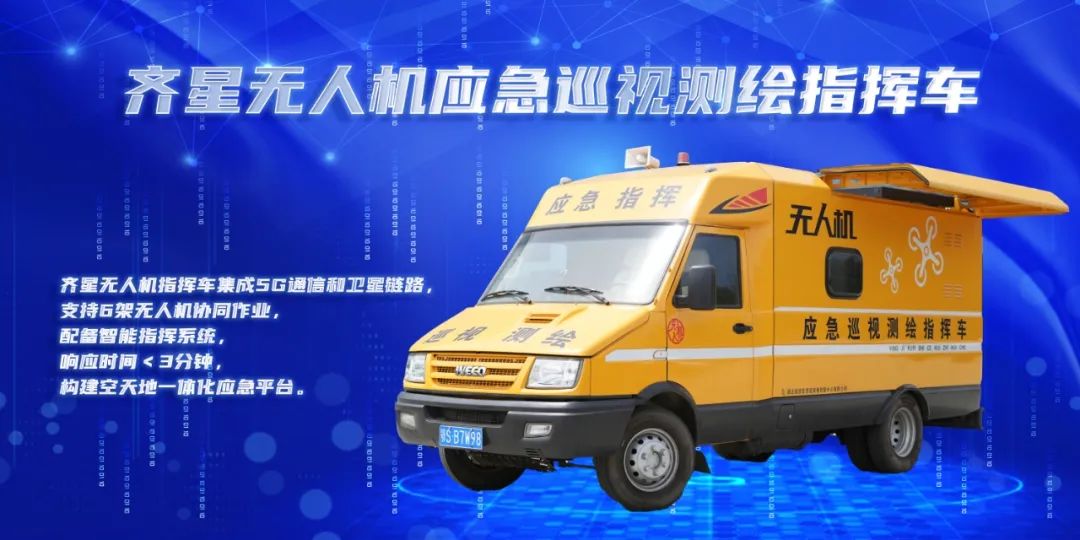 天眼巡界指挥官﹣齐星无人机应急巡视测绘指挥车。当应急响应遇上5G科技,齐星无人机指挥车就是智慧救援的中枢大脑!集成卫星链路与5G通信双网络,可同时调度6架无人机与机器狗协同作战。智能指挥系统实现3分钟极速响应,构建空天地一体化应急网络,让灾害现场无处遁形,为救援决策装上“千里眼”!